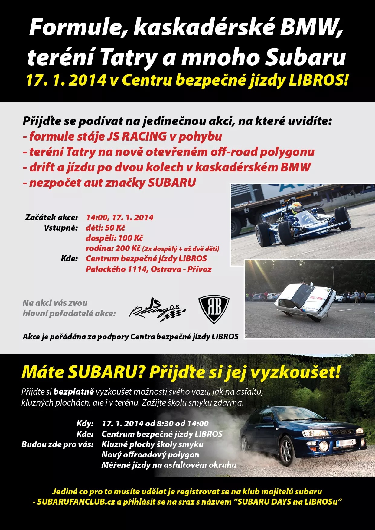 domluvili jsme akci na Centru bezpečné jízdy LIBROS, kde připravujeme takovou pěknou akci. Je to spojené jak s propagací areálu LIBROS, našeho servisu a v neposlední řadě taky Subaru a Subarufanclub. Pozor limit aut je 50!!! Datum akce je: 7.3.2015